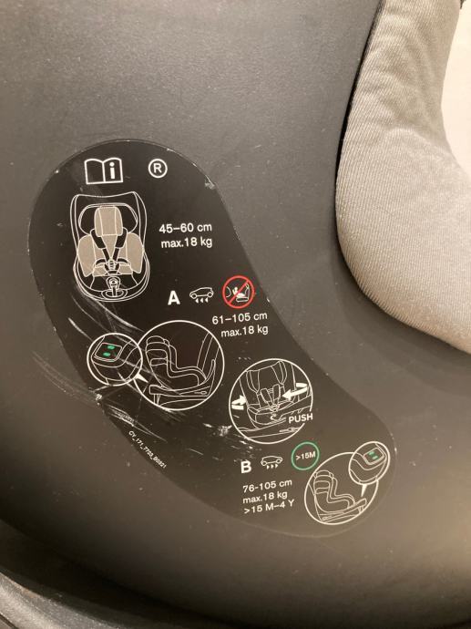 Kupljena 2023. godine, koristena za samo 1 dijete, 360 rotacija. Može se koristiti za dijete: 45-105 cm (od 0 god do oko 3,5 god, max 18kg). Praktična za korištenje jer je moguća promjena smjera (u smjeru vožne i u obrnutom smjeru dok je dijete malo), moguća 365 rotacija koja je praktična pri stavljanju ili izvlačenju djeteta iz stolice. U oba smjera vožnje je moguće stolicu postaviti u polusjedeći/sjedeći položaj i u niži položaj koji je djetetu udoban za spavanje.