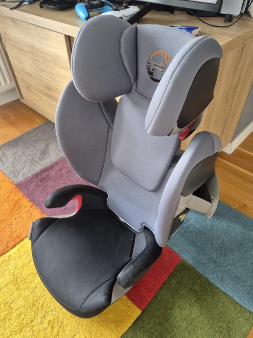 Prodaje se dječja autosjedalica Cybex Solution S-fix u crno sivoj boji grupe 2/3 za djecu 3-12 godina starosti i težine 15-36 kg proizvođača Cybex, Bayreuth, Njemačka. Sjedalica je kupljena nova i korištena samo s jednim djetetom. Sjedalica je u odličnom stanju, vrlo očuvana, bez ikakvih tragova korištenja i oštećenja, kao što je vidljivo na fotografijama u prilogu. Navlake sjedalice su oprane u perilici i spremne za novo korištenje.