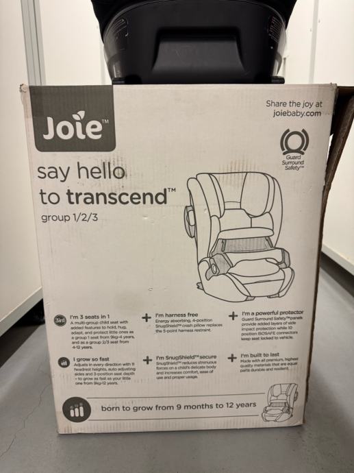 Prodajem autosjedalicu Joie Transcend 360 u sivoj (tamno sivoj) boji. Sjedalica pokriva grupu 1/2/3, što znači da je prikladna za djecu od 9 do 36 kg, odnosno otprilike od 9 mjeseci do 12 godina.