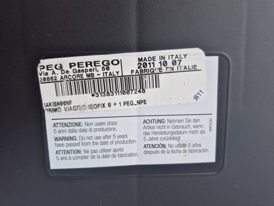 Mogućnost doplate za Peg Perego Isofix bazu (datum proizvodnje 7.10.2011), za 40 eura.