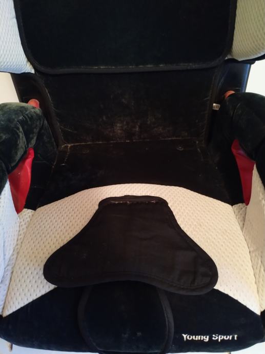 Autosjedalica RECARO Young Sport, sivo-crne boje od mekog velura. Pokriva potrebe za gotovo sve dječje uzraste zahvaljujući dvjema opcijama korištenja. S posebnim umetkom i pojasevima koji se kopčaju po sredini za uzrast 9-18 kg, a osnovna izvedba bez umetka za 15-36 kg. Time se sjedalica može koristiti čak do 12. godine života. U autu se fiksira autopojasem (nema isofix) i gleda u smjeru vožnje. Bočne zaštite za veću sigurnost.