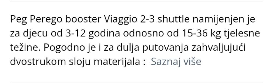 Prodajem Peg perego Viaggio isofix booster za djecu 3-12g., ili 15-36 kg. Periva navlaka, jednostavna montaža i demontaža!