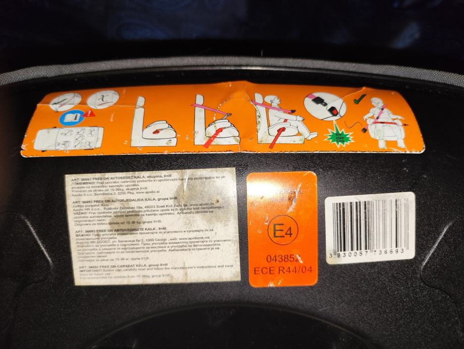 FreeON booster Kala je namijenjen za djecu tjelesne težine od 15-36 kg , cca od 3 godine do 150 cm visine. Pripada u grupu II, III.