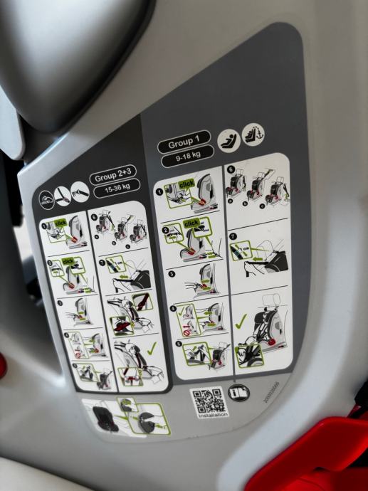 Autosjedalica se u automobil instalira isključivo pomoću Top Tether dodatnog sigurnosnog pojasa i Isofix-a.