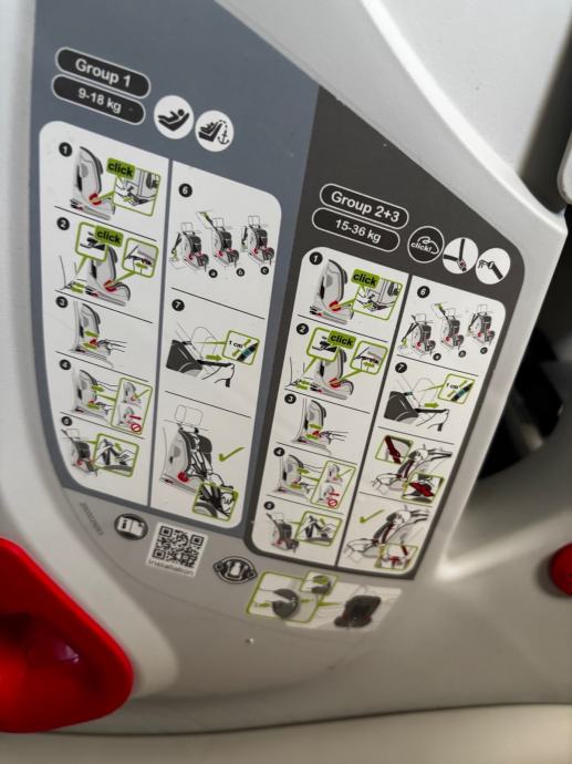 Autosjedalica se u grupi 1 koristi sa sigurnosnim remenčićem u 5 točaka, dok se u grupi 2 i 3 koristi vezanjem za pojas automobila.