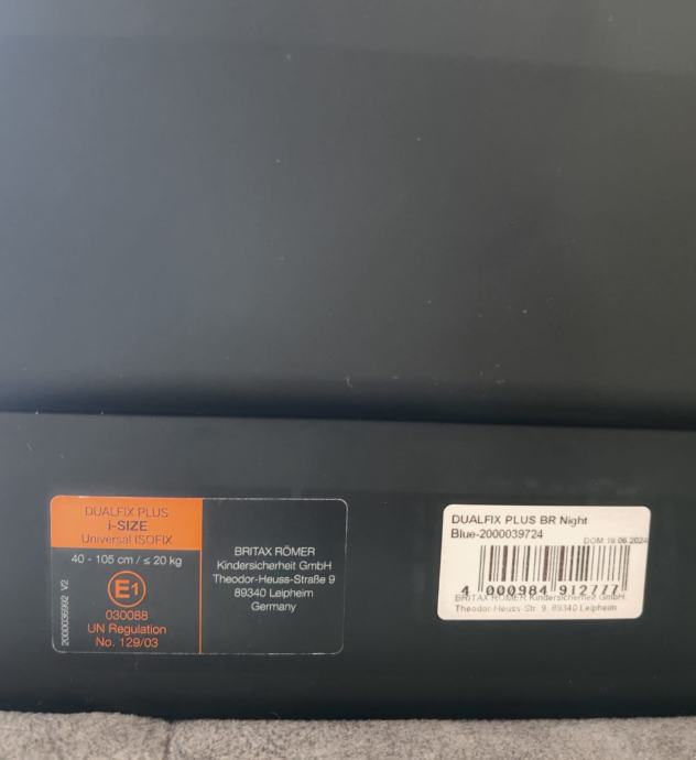 Britax Romer Dualfix Plus i-Size (40 do 105cm ili 20kg)