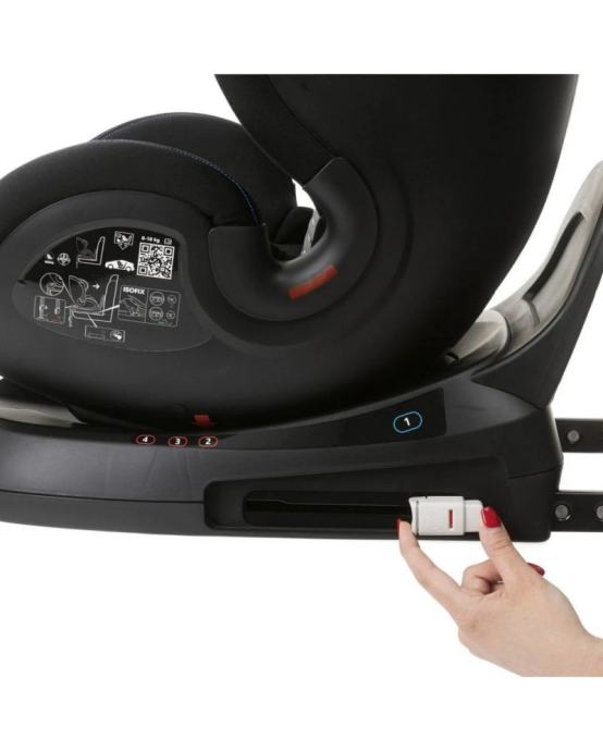 Autosjedalica se pričvršćuje isofix sustavom i ima mogućnost okretanja za 360°. Ima mrežasti dodatak za zaštitu od sunca a na samom sjedištu je materijal koji smanjuje znojenje.