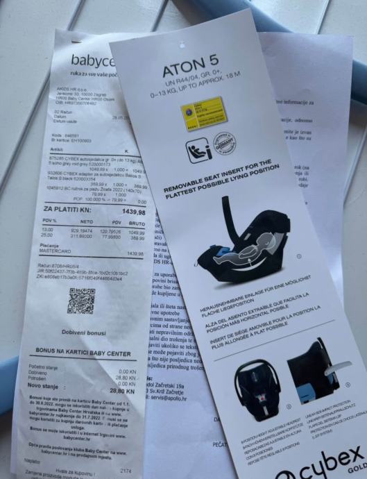 Korištena za jedno dijete, obloge se mogu skinuti i oprati. Adapteri za kolica GRATIS (samo oni dođu preko 50€)