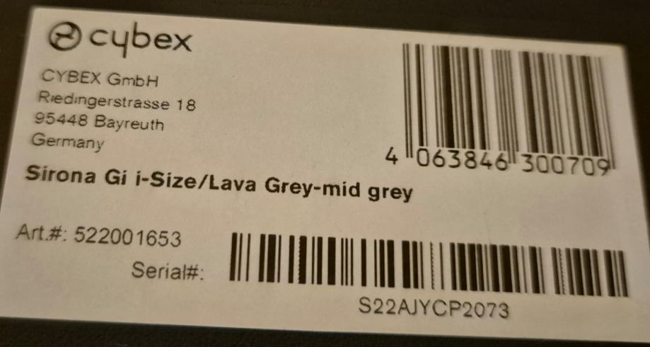 CYBEX Autosjedalica i-size 61-105 cm Sirona Gi lava grey, mid grey