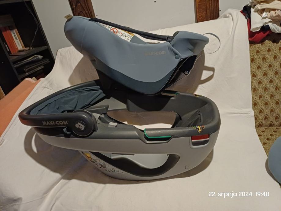 Prodajem Maxi Cosi jaje, kupljeno 2023. godine, korišteno svega 3 mjeseca. Jako praktično je što svoju uspavanu bebicu možete iznijeti iz automobila bez otkopčavanja cijele sjedalice već se samo klikom na jedan gumb izvuće umetak zajedno s bebom i bebica nastavi spavati bez ometanja.