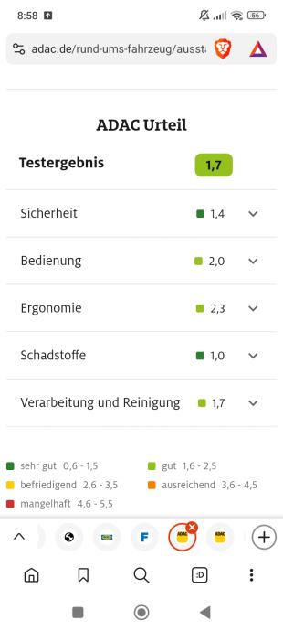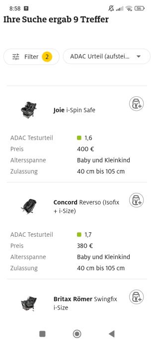 Druga najbolje ocijenjena autosjedalica, a prva po ocjeni sigurnosti u kategoriji 0+1 (40 -105 cm) prema ADAC testiranju, s ukupnom ocjenom 1,7, a ocjenom za sigurnost 1, 4!