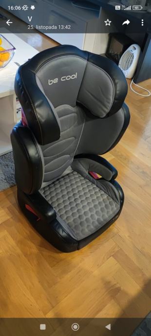 Be Cool Jet I-fix autosjedalica, grupa 2-3,namijenjena je djeci od 1 -12 godina starosti,tj.od 15-36kg. Instalacija pomoću I-fix konektora.Podesiva visina i širina naslona za glavu i ramena.Sidw impact systems za veću sigurnost.3D spužve za veću udobnost i bolju apsorpciju udarca. Korištena jako malo, oprana i spremna za daljnju upotrebu.