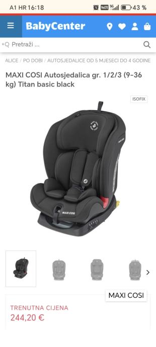 Prodajem MAXI COSI autosjedalica gr 1/2/3 (9-36kg) Titan basic black, kupljena 02.09.2022. u Arena Centru Bubamara, plaćena 244,21eur, uščuvana i ispravna