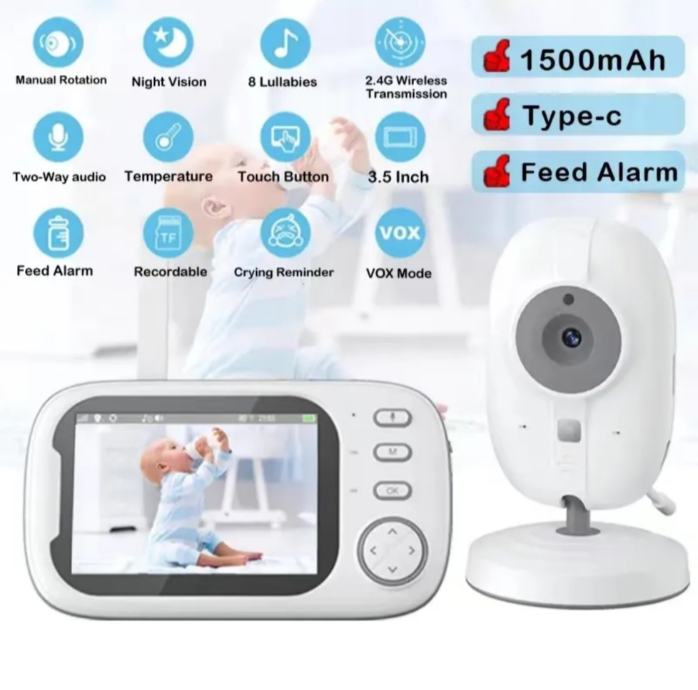 Baby phone monitor služi za video i audio nadzor djeteta, osim toga pritiskom na gumb možete pričati sa svojim djetetom (princip toki-woki) možete pustiti uspavanke svojem djetetu, 8 pjesama ima, čak i u mraku možete nesmetano gledati svoje dijete jer ima noćno snimanje, zatim mjeri temperaturu u prostoriji gdje se nalazi dijete, i ima mogućnost montiranja na zid iznad krevetića djeteta te ima pokretnu glavu u svim smjerovima za lakše postavljanje.