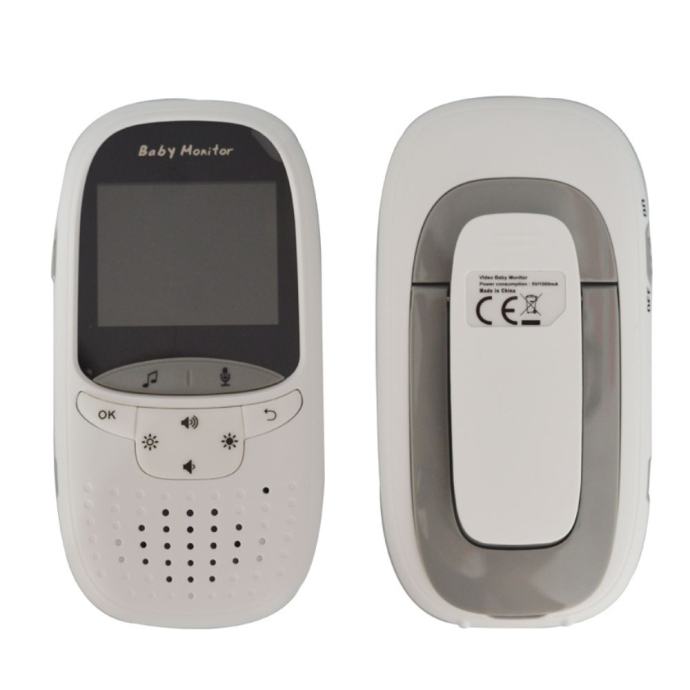 Baby phone ima ugrađen automatski noćni način rada, dvosmjernu povratnu komunikaciju, praćenje temperature i 8 ugrađenih uspavanki. Dvosmjerna audio komunikacija omogućuje izravnu vezu između kamere i monitora. Sustav razgovora idealan je za upozoravanje na aktivnosti u udaljenim sobama. Senzor temperature može očitati temperaturu okoline u sobi ili drugom prostoru. Automatski noćni način rada koristi detekciju slabog osvjetljenja za snimanje slike u mraku. Detekcija kamere pri slabom osvjetljenju ima domet do 5 m.
