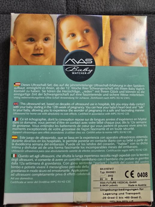 Korišten svega par puta, neotvoren gel na poklon. Baby Watcher je jedan od najsuvremenijih ultrazvučnih uređaja (“Fetal Doppler”) pomoću kojeg možete čuti otkucaje srca vašeg nerođenog djeteta – bez ikakvog štetnog utjecaja na majku ili dijete.