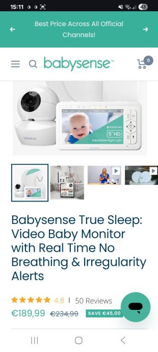 Babysense True Sleep H2: Video monitor za bebe s upozorenjima u stvarnom vremenu o prestanku disanja.