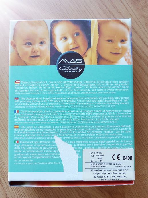 Prodajem MAS baby watcher -ultrazvuk za slušanje otkucaja srca bebe u trudnoći. Originalno pakiranje, u jako dobrom stanju. Korišten doslovno za 3-4 slušanja. Cijena 40 EUR