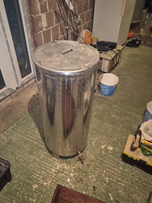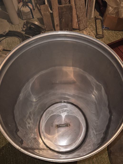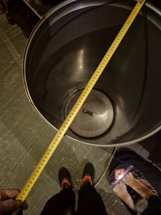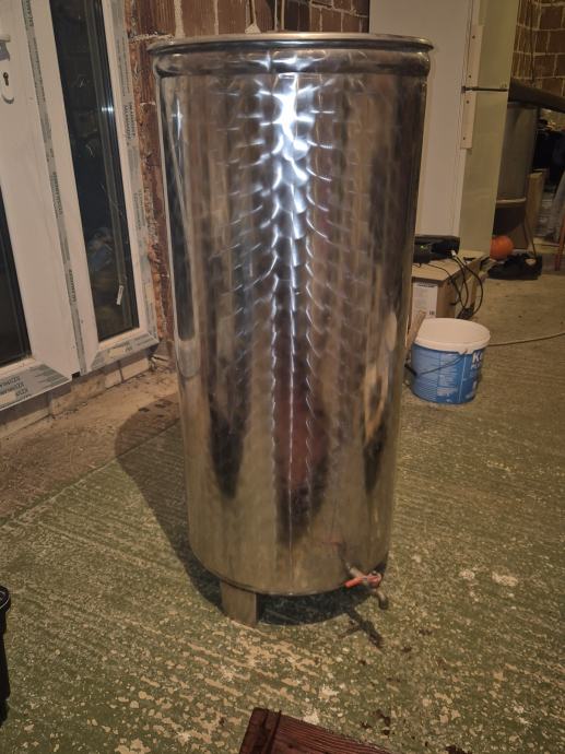 Bačva INOX, 150L, širina cca 48cm, visina samog tanka cca100cm + visina nogu 10cm = sveukupna visina bačve cca 110cm.