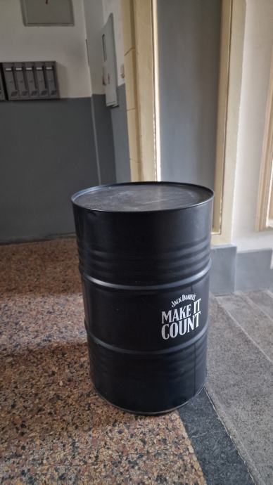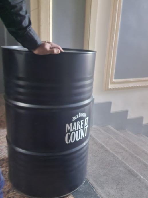 Bačve metalne "Jack Daniels " služile kao ukrasni stolovi za konzumaciju na sajmu ugostiteljtva.