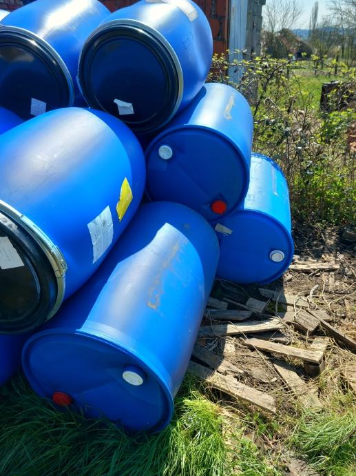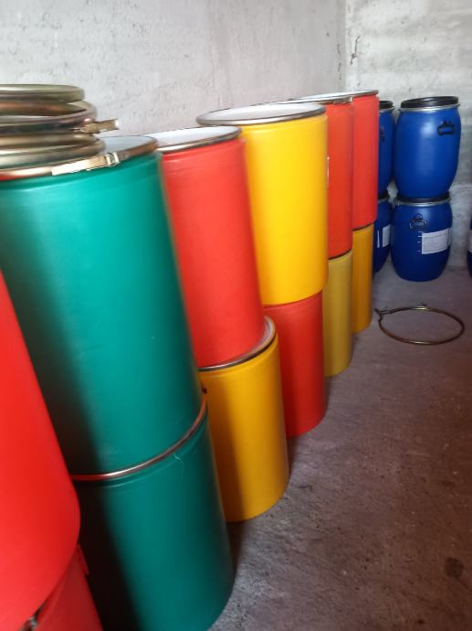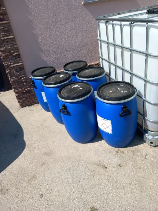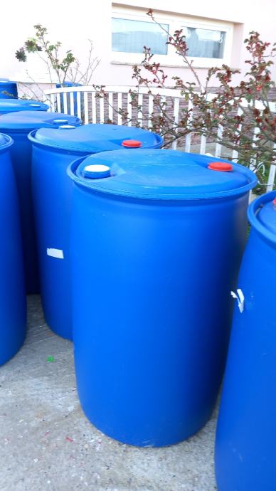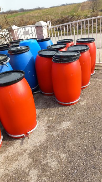 Bačve plastične više vrsta zatvorene sa dva ćepa hza tekućine otvorene s poklopcem od 60 do 220l za voće ili drugo. Cijena od 11 do 22 eura. Moguća dostava uz nadoknadu za naftu.