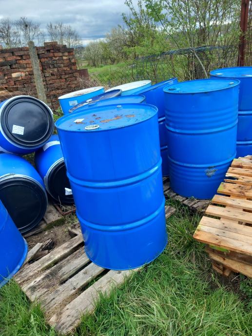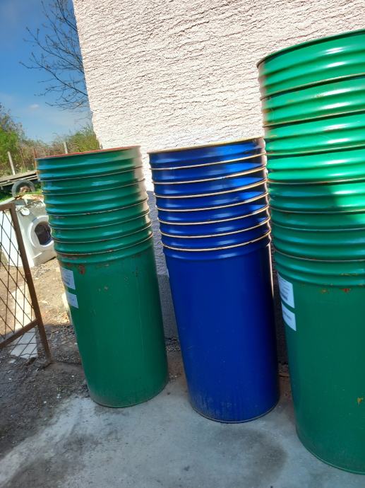 Bačve plastične15 eura, limene od 60 do 220l zatvorene za tekućine 15 eura otvorene za voće žitarice i drugo 7 eura. Moguća dostava uz nadoknadu za naftu.