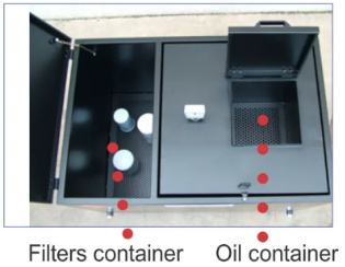 - Spremnik za izvlačenje ispušenog ulja od 300 litara s spremnikom za zadržavanje u šupljini, komora odvoda koristi filtere s rešetkom, poklopac s
