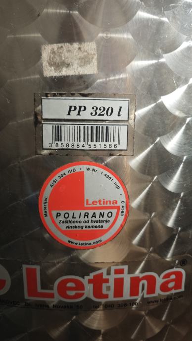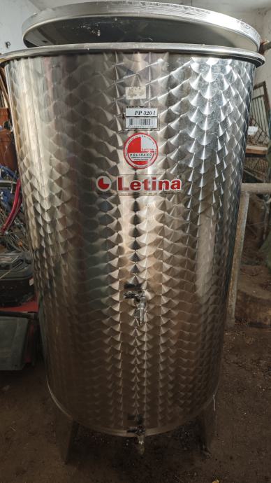 Letina, korištena jednu berbu,320lit, vanjski i unutarnji poklopac, 2 pipe+ ispust na dnu.