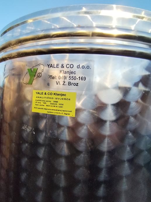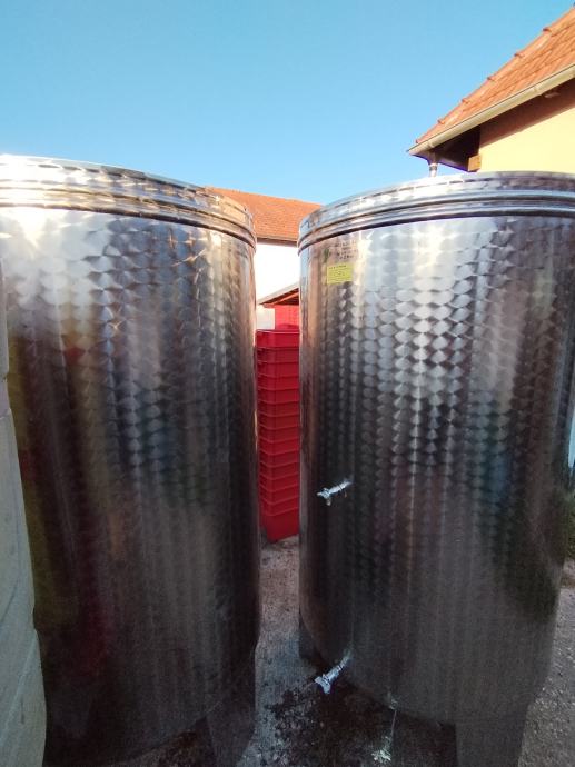 Prodajem 2 inox bačve zapremine 1100 l s 2 pipe i potpunim ispustom. Cijena 0,50€/l.