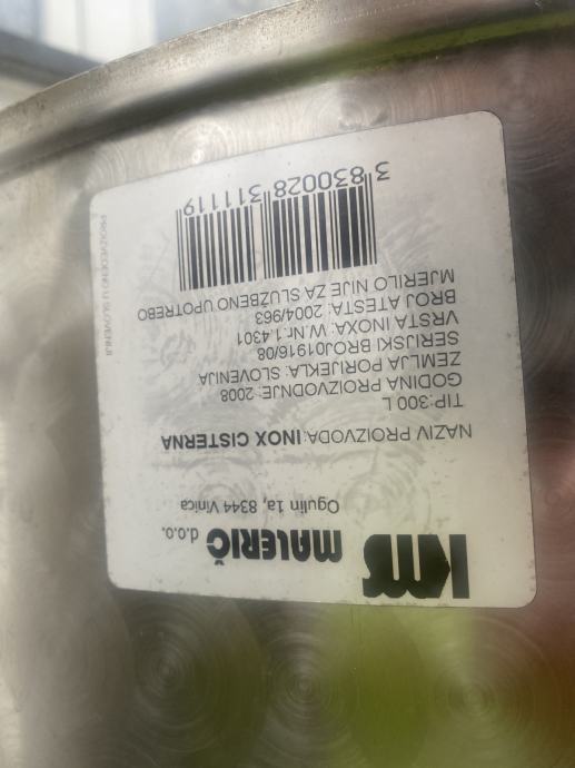 Prodajem Idvije inox bačve (Malerić) od 300 l i 180 l , plutajući poklopci, postolje…
