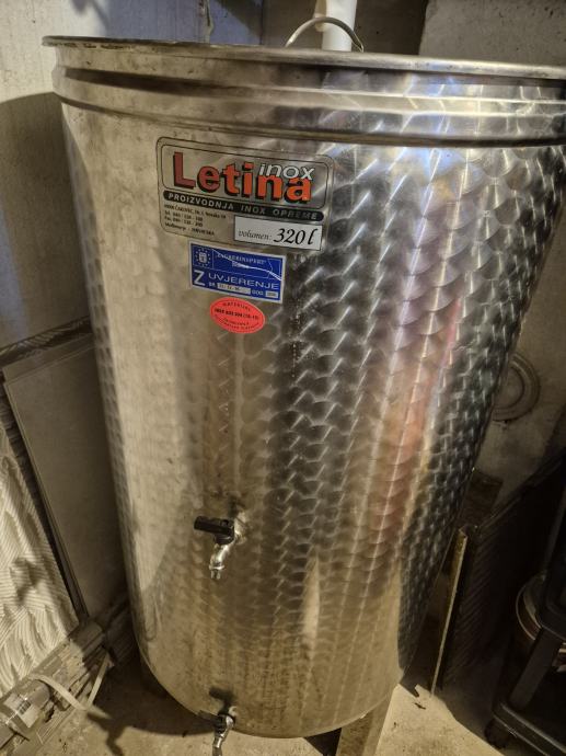 Odlična inox bačva Letina ili slična, kapacitet 320 litara, savršena za vino, rakiju ili vodu.