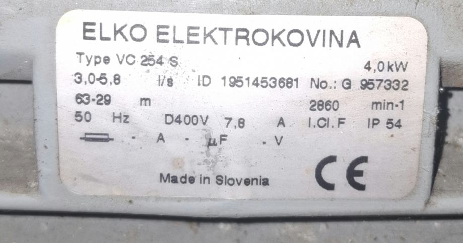Motor: Trofazni, industrijske kvalitete, namijenjen za dugotrajan rad.