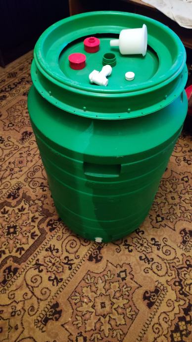 Prodaje se plastična bačva od 210 L. Plastika je HDPE što znači da je za prehrambenu upotrebu. Uz bačvu ide pipa, vrenjača, čep donji, čep gornji te čep za vrenjaču.