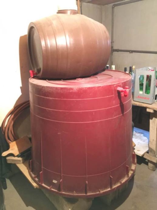 Plasticna kaca za vino 500 litara s ugradenom pipom, prodaje se za 200 kuna.