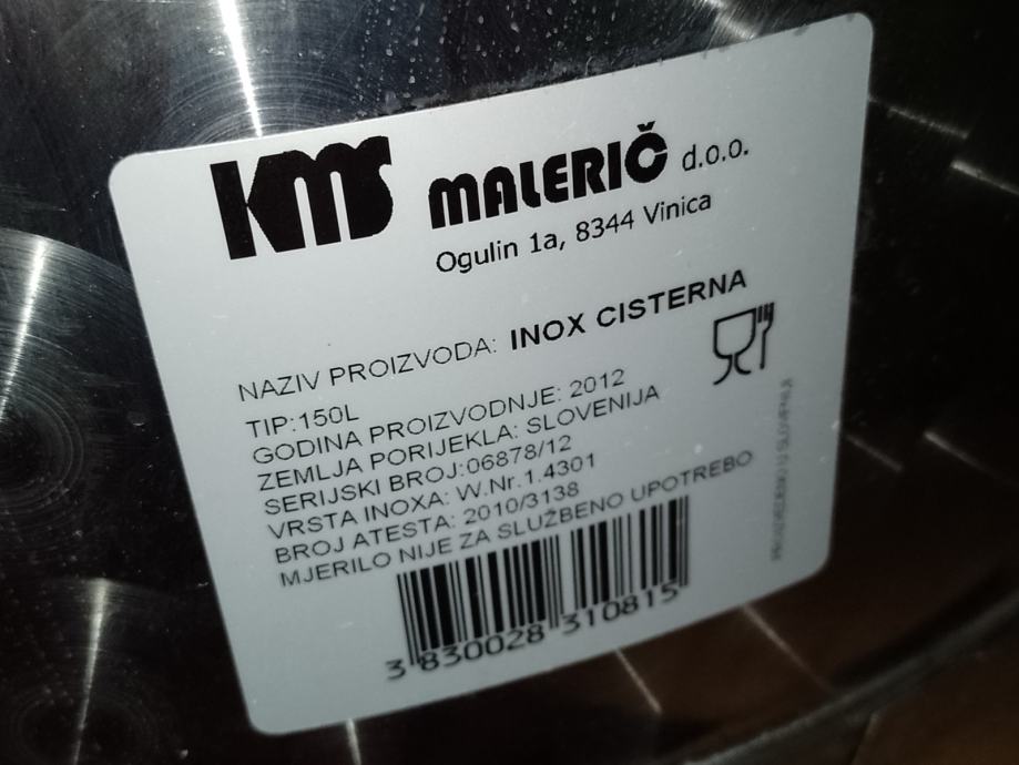 Prodajem inox bačvu za vino - kapacitet 150 l - jednom korištenu