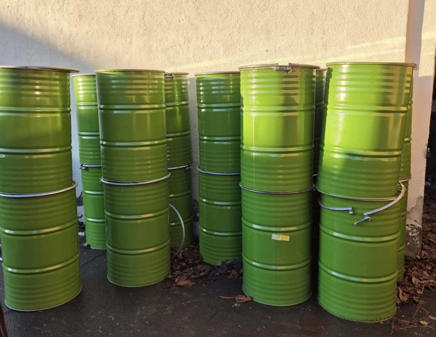 Zelena metalna bačva 250L sa poklopcem i obručom
