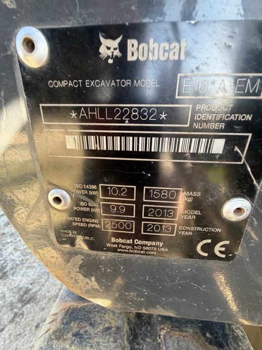 Mini bager BOB CAT E16, brza spojka, dvije korpe, instalacija za čekić