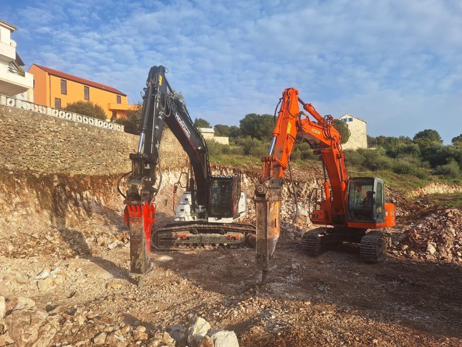 Na bageru nedavno napravljen ful servis prominjeno dosta crijeva, kuplung svi semerinzi oko pumpe. Ulje, novi hidraol, filteri ,senzori tlaka itd. Nova špica za čekić.
