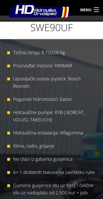 Uz stroj idu:gumene gusjenice / čelične gusjenice ( uz nadoplatu od 2.500 eur ),