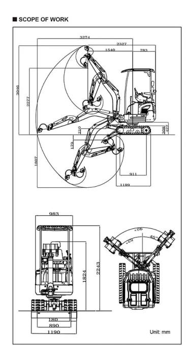 Max dubina / udaljenost kopanja 1825 / 3274 mm