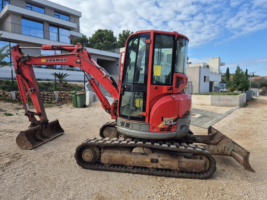 Yanmar VIO 50, brza spojka, samo 3232h, nove gusjenice, korišten samo povremeno privatno, vlasnik od 2022. Uz bager idu 3 korpe: planirka, korpa 60 cm i korpa 30cm. Stroj je u izvrsnom stanju, redovito servisiran i podmazivan. Ima novi akumulator. Ima priključke za čekić.