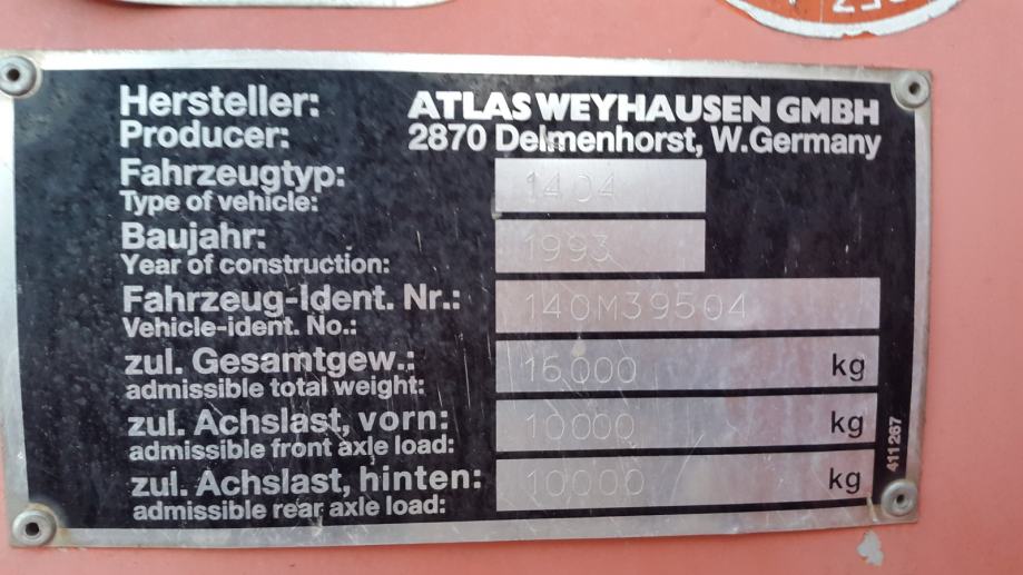 ATLAS 1404 ( Moguća zamjena za Automobil, Bager od 8-11 t, valjak )