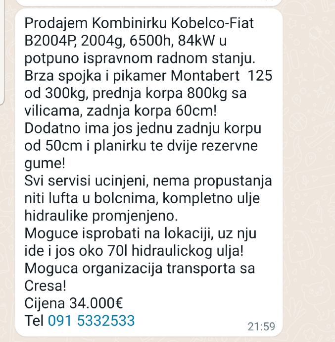 Radni stroj, kombinirka, Kobelco- fiat B2004P. 6500 r/h, 84kw