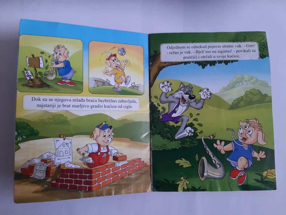 Basna "TRI PRAŠČIĆA" je poučna priča na kojoj su generacije djece naučile da se poslu koji se mora obaviti treba pristupiti temeljito i odraditi ga kako treba, a da se lijenost ne isplati. Slikovnica je krasno ilustrirana sa živim slikama u bojama, te je uz malo teksta prikladna za manju dječicu.
