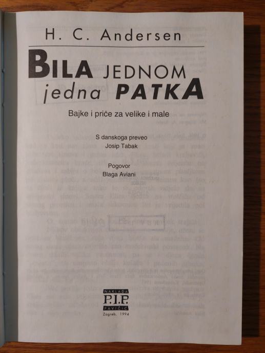 Bila JEDNOM jedna PATKA - H.C. ANDERSEN / Preveo : Josip TABAK