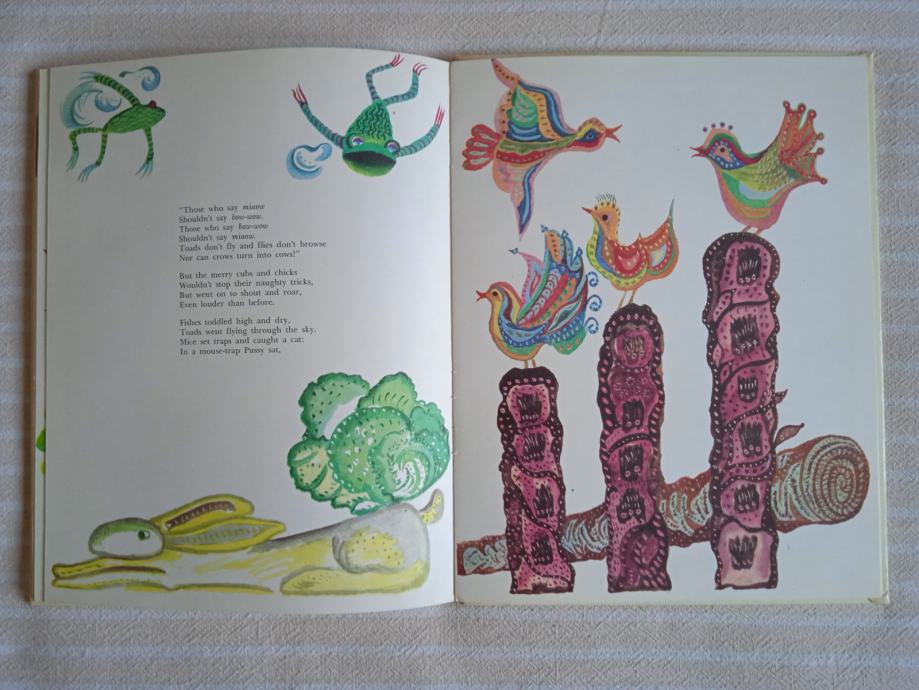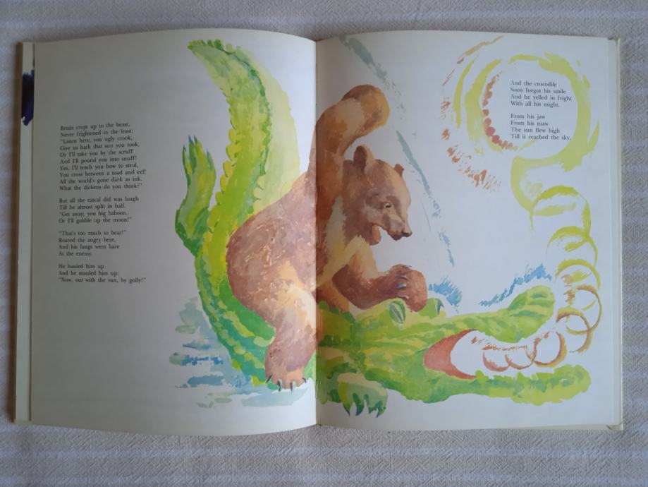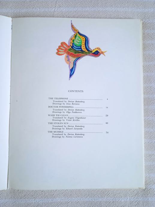 Knjiga stampana u bivsem Sovjetskom savezu daleke 1983 g. i sadrzi brojne kvalitetne ilustracije,od kojih samog V. Kirillova za jednu od 5 ukljucenih bajki. Knjiga ima diskretnu posvetu,veliki format, ostecenja minimalna od vremena.