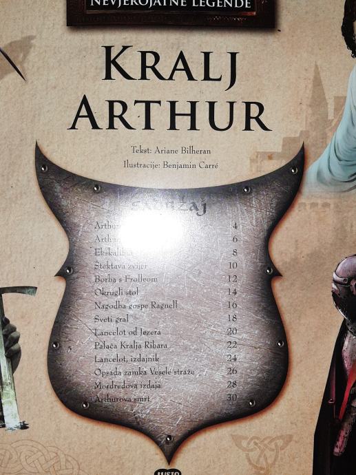 Ova bogato ilustrirana pop-up knjiga uvodi nas u svijet jednog od najvećih junaka keltske mitologije, kralja Arthura. U kakvim se okolnostima Arthur rodio, kakve su neprilike u to vrijeme zadesile Britaniju, tko je Merlin, što je Ekskalibur i koja je njegova tajna, tko su bili vitezovi okruglog stola, što je sveti gral...samo su neka od pitanja na koje će ova knjiga znatiželjnima dati osnovne odgovore. U njoj će zbog slikovitosti prezentacije posebno uživati mladi čitatelji, ali i odrasli ljubitelji mitologije.