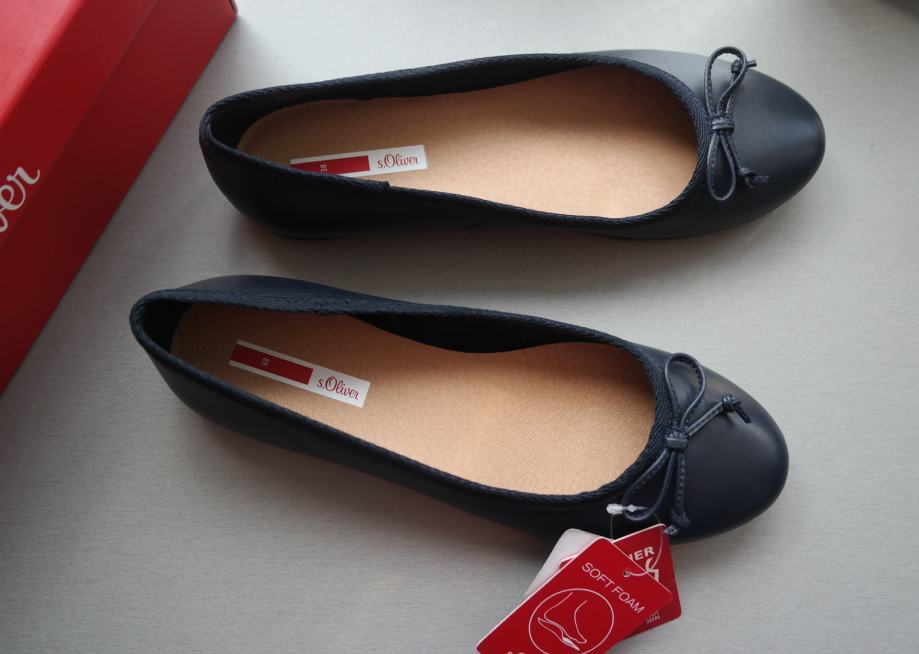 Nove balerinke s etiketom, S.Oliver, veličina 38, koža, boja tamnoplava tj. navy, mekana soft foam tabanica, unutarnje gazište mjereno 25 cm