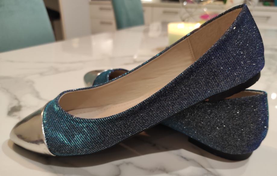Prodajem balerinke broj 41 (duljina gazišta je 26,5 cm), boja svjetlucavo plava koja se presijava, bez oštećenja, nošene 2 puta. Pogledajte i moje ostale oglase, nisam za zamjene jer se rješavam viška.