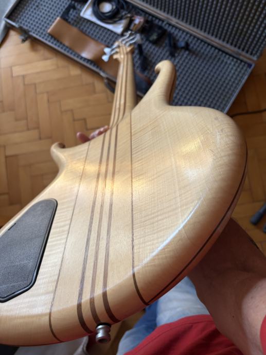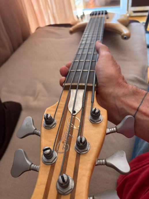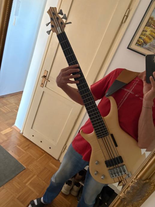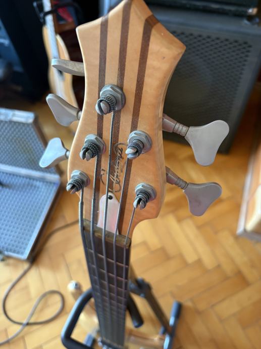 Andona (andonamusic.com) bas gitare/gitare su brend koji je u Hrvatskoj devedesetih prošlog stoljeća stvorio T.Brajdic po povratku iz Njemačke, gdje je radio za poznati brend Warwick. Znanje, stručnost i iskustvo je prenio u Hrvatsku te započeo s ručnom izradom u svojoj tvornici pokraj Siska. Njegove su gitare odmah kupili mnogi hrvatski glazbenici među njima i N.Bratoš. Ovaj petožičani bas koji izgledom podsjeća na Warwick Pro Seriju Streamer Stage 5, je zapravo isti i po kvaliteti drveta, izrade i dizajna jer je takve upravo Toni izrađivao u Warwicku. Javor od kojeg je izrađen je i kvalitetniji, isključivo ručna majstorska obrada, završni lak, neck through body, poseban ergonomski dizajn koji bas čini izrazito kompaktnim, održivim i stabilnim. Uz EMG aktivnu elektroniku koja u potpunosti isključuje šumove i buku, ovaj unikatni bas omogućuje profesionalno moćni ton, za koncerte i studijske potrebe, kao i za različite stilove uključujući rock, funk, ali i gaže, svatove. Svi dijelovi uključujući mašinice su nabavljene u Warwicku. Trujilo (Metalica), Clayton (U2), samo su neki od basista koji koriste Warwick. Možete ga u ovom ekskluzivnom dizajnu koristiti i sami. Zapravo uživati gladeći ovu ljepoticu. Uz gitaru ide Flight case, čvrsti aluminijski kofer. Za nekog dobrog basistu, ovo je kao štafeta, jer će biti šteta da bas stoji. Sve moguće ideje o doradi, dodatnoj kontroli izrade, možete provjeriti i osobno odnijeti instrument kod Ivice Čvorka (emiguitars.com), trenutno najboljeg majstora za gitare u Hrvatskoj.